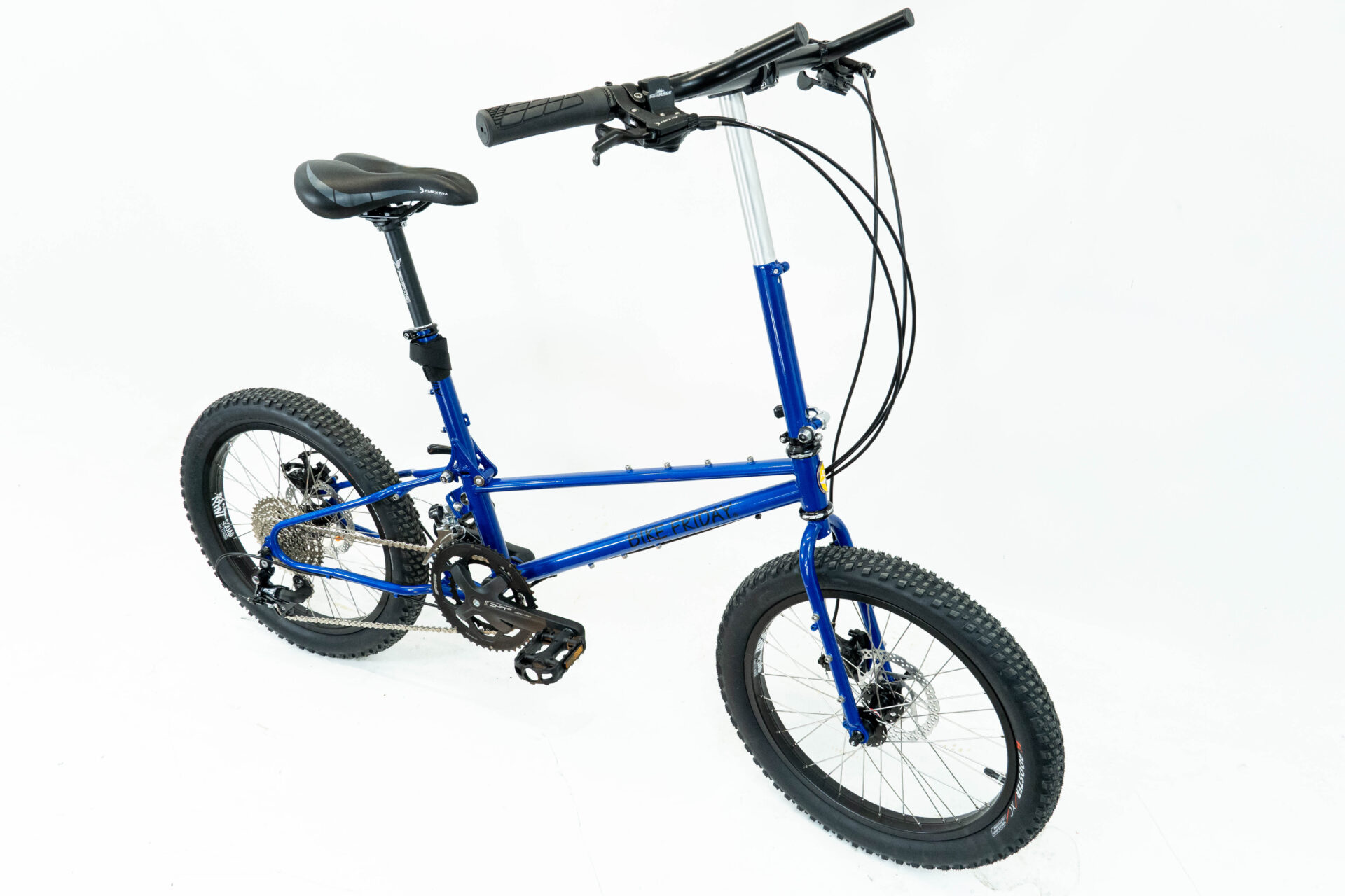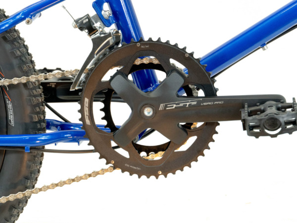 - Geometry optimized for off-road gear hauling with a longer front-center and lower center-of-gravity than other Bike Fridays