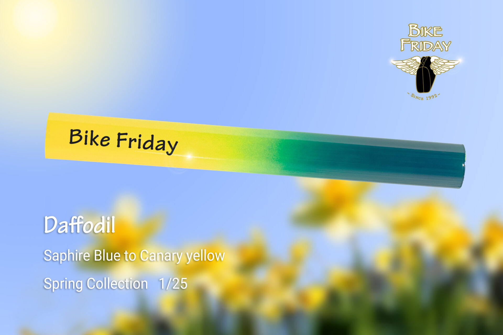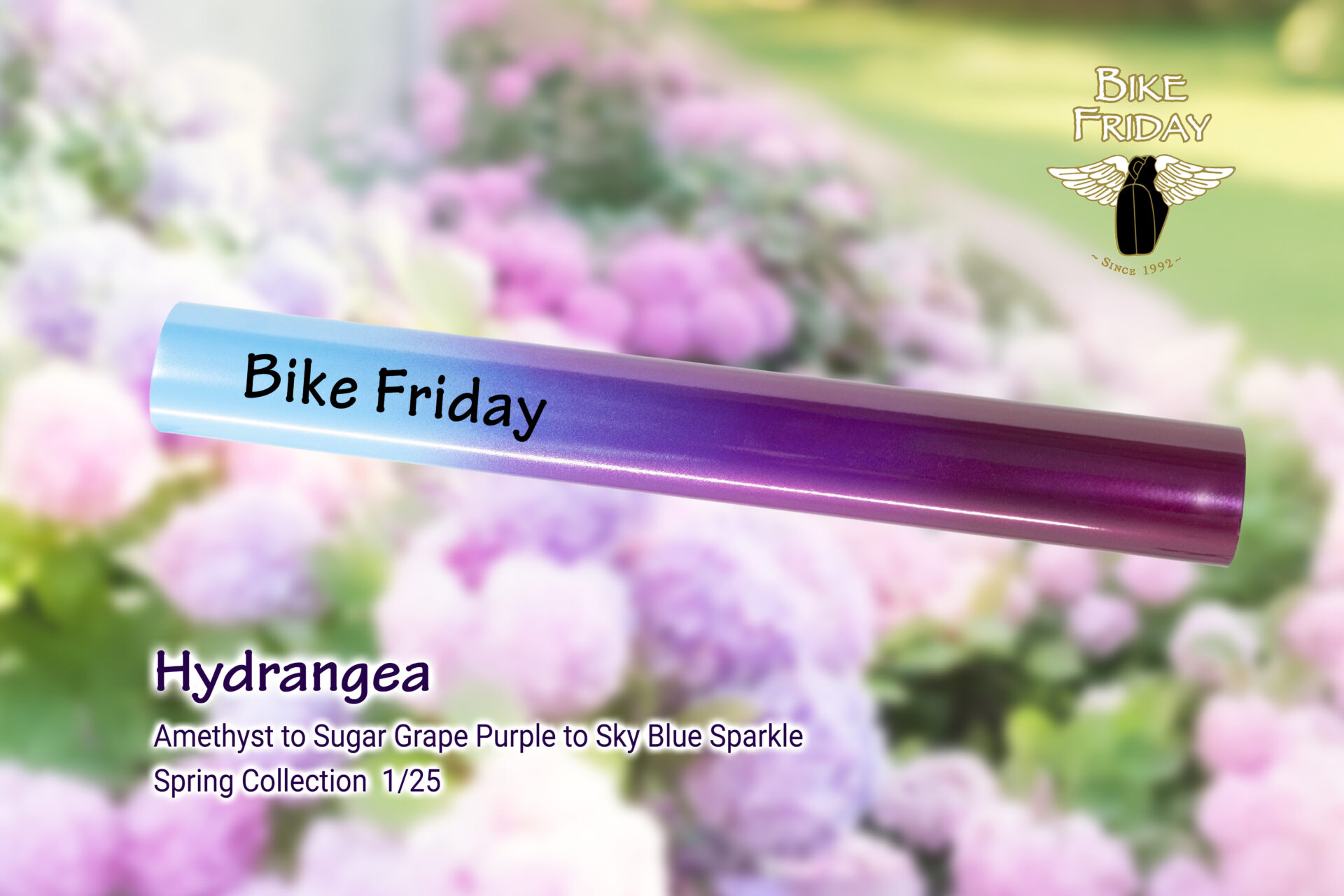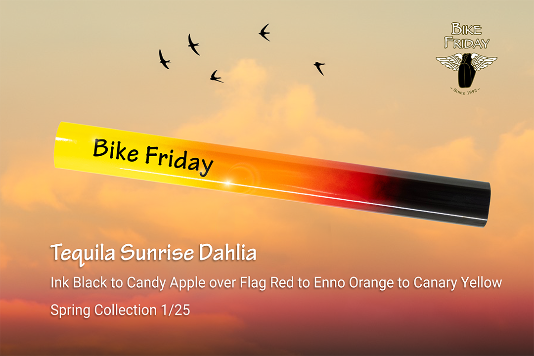 Ryan—our Production Line Master and a 30-year Bike Friday team member—put his powder-coating skills to work on a set of special fades inspired by the nature around us, each named for a spring bloom. Each colorway is capped at 25 bikes total. Every bike in the run will come with a Certificate of Authenticity and a limited-edition plaque marked with its edition number (1/25).